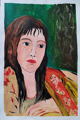 îmbrăcată în mov și își imaginează aproape cap- coadă